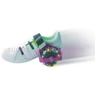 “哪咤太子爆走鞋”采用時尚、環保、健康新概念,結合輪滑的特點:使用更安全,攜帶更方便,研發新型兩輪閃光滑輪,非同一般滑板車功能。其滑輪內安裝發電結構快速行駛閃光裝置,無需電池即可感受到腳踏風火輪閃光效果。按照人身體的力度均速滑行,使用方便,特別在黃昏或夜晚玩耍,顯現出風火輪幻彩光芒,讓玩者頓時足下生輝,奇樂無窮!瞬間成為吸引眾人眼球的焦點,它有助于放松大腦,緩減壓力,有益于身體健康!是年輕一族追捧的時尚運動玩具!