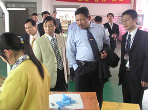 在康奈,參贊們先參觀后聽介紹。康奈廠區(qū)規(guī)模之大、環(huán)境之優(yōu)美、制鞋工藝技術(shù)之先進讓客人大開眼界。在公司形象展示中心,特別是在介紹康奈商標(biāo)釋義和鄭秀康創(chuàng)業(yè)歷程的宣傳畫前,鄭秀康25年間能帶領(lǐng)一幫人把康奈做成中國鞋業(yè)領(lǐng)軍企業(yè),東盟貴賓都很驚訝和欽佩。