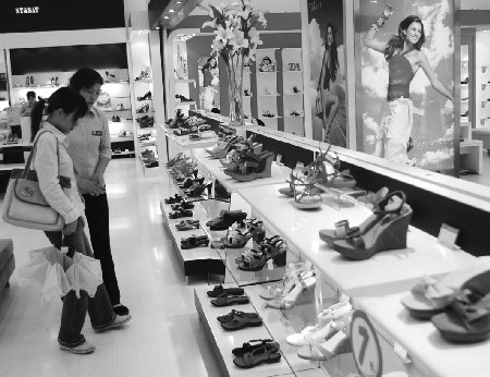 隨著夏季來臨,記者在市區(qū)的一些商場看到,款式新穎、顏色各異的涼鞋擺滿了各個鞋柜,已然成為當前最暢銷的商品。營業(yè)員告訴記者,今年的女涼鞋在面料及鞋面的配飾上精雕細琢,大膽啟用薄紗、綢緞等面料制作鞋面,一展女性的嬌柔。而今年男款的涼鞋則流行休閑風格和古典風格,以采用磨砂皮料的居多,并以大地色系為主,特別是米色、咖啡色頗受男士們的歡迎。 本報記者 朱凌飛 攝