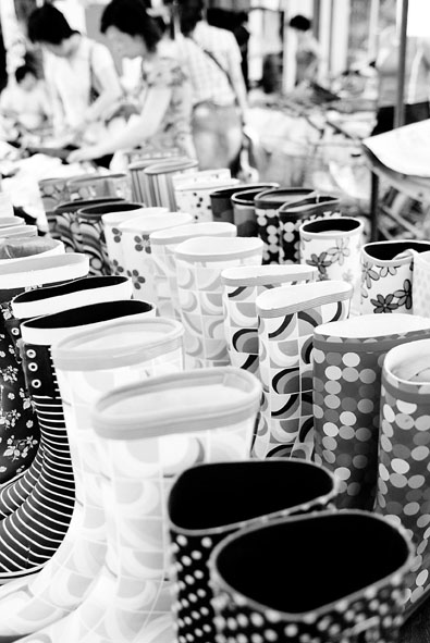 今年在香港、江浙一帶掀起了一股花雨鞋的風潮,本市的流行市場上也見到了花雨鞋的身影。這些款式多樣、五彩繽紛的雨鞋已超越了一般雨鞋的功用,成為時尚的標志,在雨水并不多的北方,購買的人依然不少。