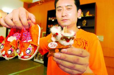 “與民間傳統手工虎頭鞋相比,杜平所做的虎頭鞋沒有實用價值,可以說是單純的手工藝品;在做法上,傳統虎頭鞋的鞋頭與鞋幫是一體的,而杜平的則是分開做的。”博物館的工作人員告訴記者。
