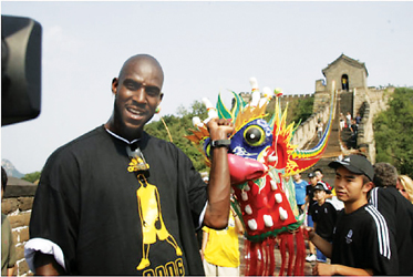 “狼王”加內特來了。上午在體育館里大秀球技,下午則興致勃勃游覽長城……昨天短短一天時間里,“狼王”在北京忙得不亦樂乎。