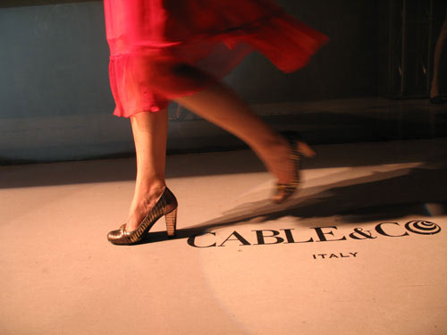 2006年7月15日的廣州空氣中似乎多了分躁動,結合兩岸四地的CABLE&Co.登陸中國大陸發盛會點燃當晚的十足熱力。為了迎接此次盛宴,來自意大利、美國、臺灣及大陸的CABLE&Co.設計師、高層管理者云集廣州二沙島煙雨路的后街爵士酒吧,整場的經典黑白拼色構筑了別樣的時尚誘惑,品牌主視覺畫面——舞動的赤足優雅而含蓄,隱約中似乎有音符在足尖滑落……映襯著二沙島的竹海、江景,整體宛如芭蕾劇公映般,在潮濕的夜色里熠熠華光閃爍。時尚配飾伸展臺展演的,絕對不會只是獻給資產階級,如果說高級皮鞋有不斷年輕化的趨勢,那么隨著本季意大利時尚鞋類設計師品牌CABLE&Co.的首度登陸,將引領中國大陸2006/2007秋冬鞋飾配裝的新變。