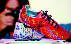 8月9日,在泰國首都曼谷舉行的魅惑水晶鞋展上,一名模特展示一雙以水晶裝飾的鞋。