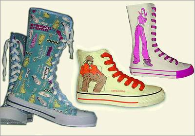 聽說在春夏時節(jié),有設(shè)計師與藝術(shù)家合作,推出了一款由一部卡通電影《黃色潛水艇》得到靈感所設(shè)計的涂鴉帆布鞋。將原本素面的帆布鞋面,改造成一個可以揮發(fā)創(chuàng)意的舞臺,這種獨一無二、充滿個人風格的款式,也有了一票帆布鞋愛好者。