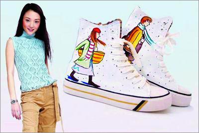 很久沒穿過帆布鞋了,覺得它舒適,但不夠時尚。各大品牌的帆布鞋,也變成了與膠鞋雷同的樣子,或者干脆就沒有什么特色。有朋友喜歡DIY的,就親自給自己的帆布鞋換了個樣子,因為造型可愛,干脆就跑到網(wǎng)上做起了手繪帆布鞋的生意,據(jù)說還很紅火。