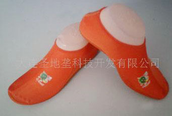 2006春夏第五代新款,高腰設計,鞋邊加上一圈膠條,并在鞋面上配以精致的卡通圖案,防硌、防滑、防菌、柔性,穿用時透氣好、彈力大、不吸水、不進沙、解除硌腳、傷腳的憂慮,游泳時無阻力,可反復穿用。