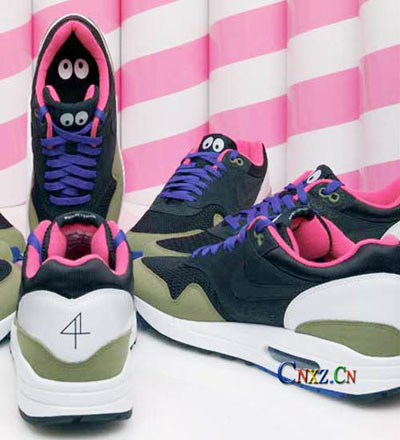 瑞士潮鋪Plus 41與Nike一起合作的Air Max I鞋款如圖中所示,鞋身以黑色、草綠色及白色點綴,非常特別。最為醒目的是鞋舌選用“眼睛”Logo取代以往的Nike Swoosh圖案,鞋墊之上同樣如此,鞋跟就有'41'的數字描繪。目前暫時未有其它的消息公布。