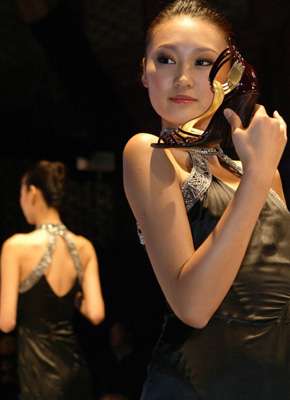 十月九日晚,「意大利鞋秀」在北京舉行,模特們在紫禁城端門城樓上走出了一臺意大利的「時尚鞋秀」,為第三屆中國國際鞋業博覽會添色。圖為中國新絲路模特展示各種新款意大利鞋