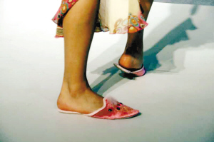 馬康勇介紹,鞋廠或貿易公司通常會根據產品銷往不同的國家,分別來挑選腳型大小適合的試鞋小姐,比如歐線37碼或者是美楦6#(相當于國內的37碼),并且還要測量雙腳的肥度等各個方面。試鞋小姐試穿的都是所有鞋子中的基本碼,其他的碼數只需在此基礎上,用電腦進行改變就可以了。馬康勇說,當時他所在的工廠為了挑選一個歐線37碼的標準腳型,測量了全廠的400名女工,結果只有一人符合條件,“百里難挑一”這種說法一點也不為過。
