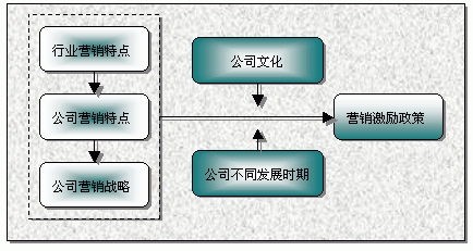 這兩種做法根據不同行業的特點,不同公司文化和公司不同發展時期進行選擇。一般在公司營銷體系不是很成熟,客戶來源尚不穩定時,要采取低工資福利高提成的做法,在公司營銷體系成熟,客戶相對穩定,特別是公司能夠掌握終端時,就可以采取高工資福利低提成的做法。營銷激勵政策規劃思路如下圖: