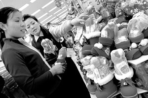 據(jù)導(dǎo)購小姐介紹,這是商場專門為圣誕節(jié)設(shè)立的專柜,全部提供圣誕商品。僅圣誕靴套裝,就有十幾元到三十幾元的不同價位的商品出售。據(jù)導(dǎo)購小姐介紹,隨著圣誕節(jié)的臨近,這種圣誕靴的銷售數(shù)量將會遠遠超過現(xiàn)在的每天十幾只。