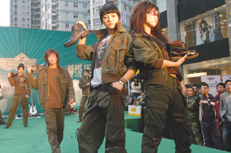 昨天,一場(chǎng)別開生面的“飛駝軍鞋”秀在市區(qū)大南門銀泰百貨廣場(chǎng)舉行,模特身著個(gè)性時(shí)尚的軍裝、軍鞋,走秀在軍旅音樂中,著實(shí)讓人耳目一新。
