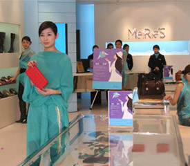 還沒(méi)來(lái)得及在多欣賞幾眼,只見(jiàn)人群一涌而進(jìn)。明亮、寬敞、清新的店面設(shè)置更是讓人感到舒適和享受。有的年輕的女士直接到前臺(tái)向店員詢問(wèn),有的興奮地將鞋架上的鞋拿下試穿,店里的導(dǎo)購(gòu)員忙得不亦樂(lè)乎。此刻,新開(kāi)張的MERIE`S成了溫州第一街“五馬街”熱鬧的“風(fēng)暴中心”。
