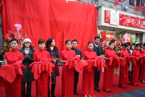 “這是家什么店啊,什么時候開店呢?”上月28日上午,在溫州五馬街,兩位女士望著蒙著一面紅色“面紗”的店面好奇地問。