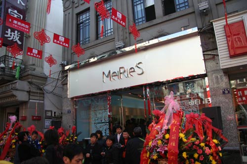 還沒來得及在多欣賞幾眼,只見人群一涌而進。明亮、寬敞、清新的店面設(shè)置更是讓人感到舒適和享受。有的年輕的女士直接到前臺向店員詢問,有的興奮地將鞋架上的鞋拿下試穿,店里的導(dǎo)購員忙得不亦樂乎。此刻,新開張的MERIE`S成了溫州第一街“五馬街”熱鬧的“風(fēng)暴中心”。