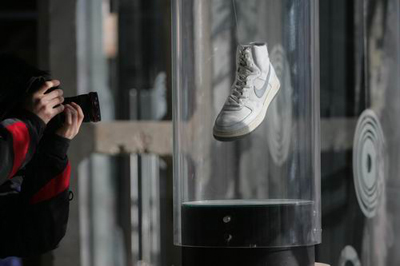 北京時(shí)間1月6日晚間,耐克Air Force 1 二十五周年展暨耐克706空間啟動(dòng)儀式在北京朝陽(yáng)區(qū)798工廠舉行。圖為二十五周年展上展出的25年前的那雙AF1。
