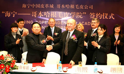 中國內(nèi)地第一家毛皮學(xué)院"海寧--哥本哈根毛皮學(xué)院",在"中國皮革之都"海寧正式簽約。這是全球最大的毛皮供應(yīng)商--哥本哈根毛皮公司和海寧中國皮革城共同創(chuàng)立的專業(yè)培訓(xùn)機構(gòu)。學(xué)院將為國內(nèi)毛皮行業(yè)吹來帶來國際化的新風(fēng)。