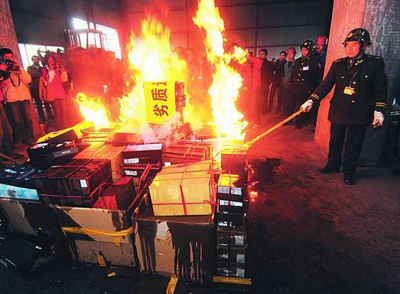 去年12月29日,浙江省工商局在杭州市郊區的垃圾處理中心燒毀了300多雙皮鞋,其中包括其樂、HUGOBOSS、D&G、佐治等十多個世界品牌。