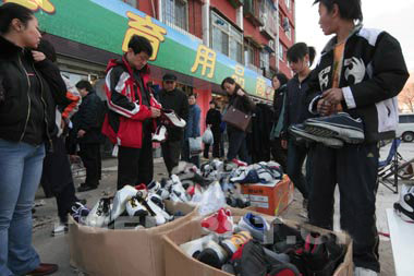 “五十一雙甩賣啦。”從昨天起,崇文區(qū)體育館西路的“體育用品一條街”上的26家商鋪正式開始拆除。昨天下午3點(diǎn),記者在現(xiàn)場(chǎng)看到,東側(cè)的攤位已經(jīng)被拆掉,不少攤主把貨品搬到路西側(cè)繼續(xù)叫賣。幾位攤主表示,拆除后該地將建新樓,屆時(shí)他們將回到路旁,重新開始小店的經(jīng)營(yíng)。