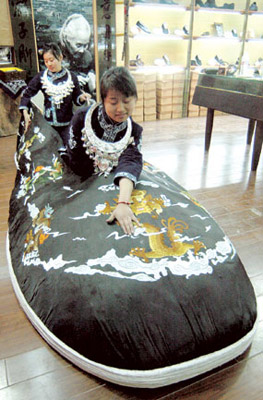 2008米棉布繡“九龍鞋王” 20名湘繡師2年繡巨鞋