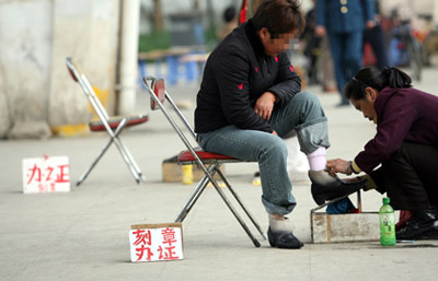 擦鞋兼職“辦證”