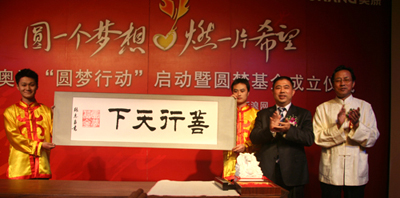 5月10日,奧康集團正式在京啟動一項具有長期和深遠意義的大型社會公益活動-- "冠軍圓夢計劃",并成立奧康奧運圓夢基金,用以幫助歷屆奧運冠軍代表實現他們的公益夢想,帶動"全民公益"精神的建立。