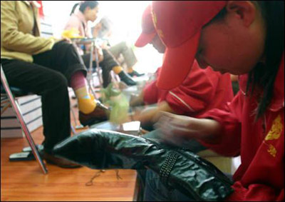 今后泉州市民擦皮鞋不必坐在街頭,還可以像做美容一樣給皮鞋來一個“全套”服務。近日,泉州街頭出現的第一家擦鞋連鎖店就打出了這樣的口號。不過,這里的收費也不便宜,普通客戶擦一雙鞋收費要5元,會員價也要2.5元。