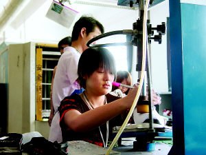 5月30日,莆田市華豐鞋業有限公司一工人正利用福建制鞋行業技術開發基地研發的新技術生產運動鞋。該基地去年7月成立以來已對接成果8項。