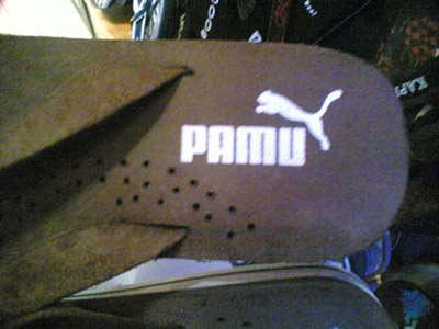 近日,在福州市場發(fā)現(xiàn)不少“傍名牌”的鞋子,如不仔細辨別,極易誤認為國際知名產(chǎn)品。這款PAMU拖鞋是在福新中路家樂福超市樓下某商店里發(fā)現(xiàn)的,其英文及logo很容易讓人誤認為是國際品牌“PUMA”的。
