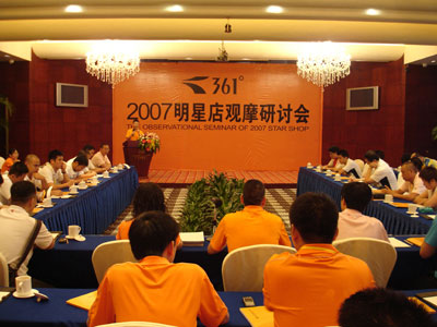 日前,三六一度(中國)有限公司總裁丁伍號、助理總裁夏友群和來自全國32家分公司總經理齊聚珠江三角洲明星城市,361°07明星店觀摩研討會在中國惠州召開,2007年市場戰略的重頭戲“明星店工程”得以大力推進。