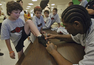 當地時間6月19日,邁阿密熱隊夏季訓練營在好萊塢舉行了球星見面會,熱隊球星哈斯勒姆出席了見面會并為小球員們簽名留戀。