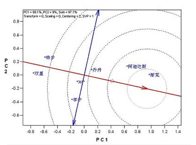 上圖是消費者對七個旅游鞋主要品牌的質量整體感知比較圖。該圖表明,從消費者感知的角度,耐克、阿迪達斯的質量更具優勢。