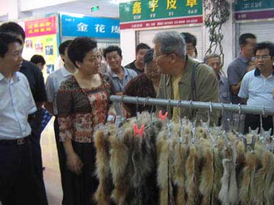 中國·大營國際皮草交易中心李瑛總經理一路陪同趙宗鼐及相關領導參觀,并詳細介紹了交易中心的市場規模及經營情況。趙宗鼐詳細詢問了皮草產品加工、銷售及產品目標市場的情況。棗強縣委書記張有如向趙宗鼐介紹大營皮草時用“買天下,賣天下”六個字形象的概況了大營在整個皮草行業的地位和影響力。趙宗鼐重點參觀了金帝裘皮和善和皮草,還與陪同人員饒有興致的討論起狐貍皮碎料褥子的制作、手感和用途。趙宗鼐充分肯定了交易中心在大營乃至全國皮草行業內的支柱地位。