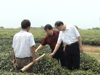 農發行孝昌縣支行大力支持和服務新農村建設,加強農業小企業貸款營銷工作。圖為該行信貸人員到茶場進行項目調查和業務營銷。