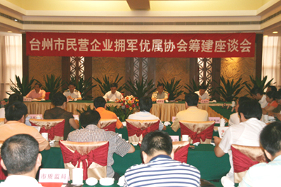 臺州市民營企業擁軍優屬協會籌建工作會議于6月20日在市政府召開,市委副書記朱賢良,市委常委、臺州軍分區司令員周祥生,通宇縫紉機股份有限公司總經理陳曉波參加會議并講話。
