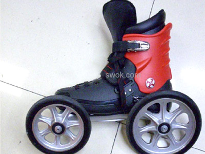產(chǎn)品屬國家專利產(chǎn)品,遠(yuǎn)銷美國、英國、東南亞。07年最新在國內(nèi)上市,深受輪滑愛好者喜歡。每只鞋子各有兩個橡膠觳輪,前大后小,適合在任何地面(草地、沙灘、石路、土地)滑行,滑行的玩法千變?nèi)f化,滑行速度也超過傳統(tǒng)的輪滑鞋。它是目前世界上功能最齊全的溜冰鞋。顛覆了輪滑只能在平坦路面滑行的歷史,讓更多的溜冰運(yùn)動愛好者參與輪滑健身運(yùn)動,極大促進(jìn)了新概念極限運(yùn)動,是輪滑又一次新的革命。