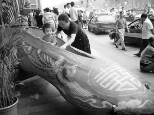 7月14日、15日兩天,一場以中華鞋文化為主題的展覽活動(dòng)在邯鄲市新世紀(jì)商業(yè)廣場舉行,草編鞋、宮廷鞋、三寸金蓮鞋等向市民展示了中華的鞋履文化。其中一只據(jù)稱是目前世界上最大的繡花婚禮鞋吸引了眾人的目光。該鞋長2.8米,高0.84米,鞋內(nèi)能躺2至3人,鞋子由7位技師耗時(shí)半年制作而成,共用去100多公斤有關(guān)材料。