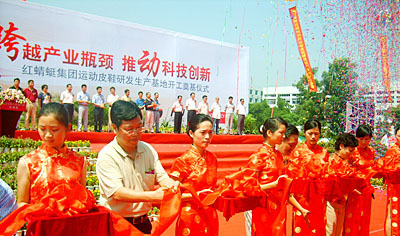 20日上午,隨著中國輕工業聯合會副會長張善梅的高聲宣布:紅蜻蜓運動皮鞋研發生產基地開工。國內第一個運動皮鞋研發生產基地隨之在我縣甌北誕生,中國奧委會副主任吳壽章、市領導卓高柱、朱貴遠、縣四套班子領導盧春中、王立彤、汪大清、謝崇福等以及省、市、縣有關部門負責人參加了開工典禮。