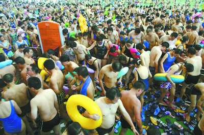 近日,位于四川省遂寧市大英縣的中國死海度假區迎來旅游高峰,眾多游客來此休閑避暑。圖為昨日,“死!倍燃俾糜螀^內人頭攢動。