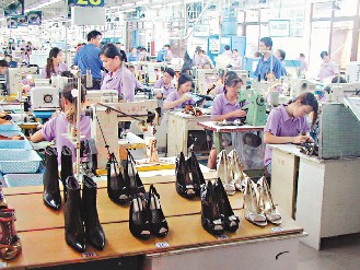 專注于高級女鞋制造的興昂國際,預計2009年集團營業額將突破10億美元。圖為興昂位于大陸東莞長安鎮的女鞋制造生產線。