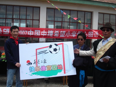 中捷公司副總經理張志友向中捷希望小學捐贈中捷快樂體育園地