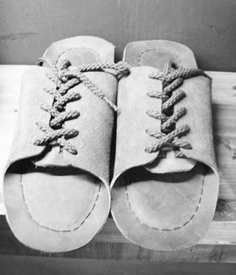 這款個性拖鞋給人的第一感覺是:將跑鞋的鞋面設計“嫁接”到了拖鞋上。綁帶和鞋舌都和跑鞋一模一樣,只是沒有了鞋頭和鞋后幫。磨砂牛皮的鞋面質感很好,鞋底是約2厘米厚的牛筋底,很耐磨哦。這款拖鞋屬于中性風格,男女生都適合穿,有本色、綠色、藍色和黑色可供選擇,價格是150元。搭配個性張揚一點的休閑款服裝的話,這款鞋可以成為點睛之筆。