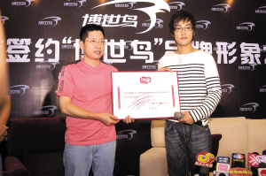 從福建省博世體育用品有限公司(以下簡稱博世公司)獲悉,7月29日,該公司已在廣州與韓國當紅天王巨星安七炫正式簽約,聘其擔任“博世鳥”品牌的形象大使。博世公司總經理丁少清告訴記者:“今后,我們的產品將著重突出韓國風格,力爭讓‘博世鳥’成為國內運動鞋領域時尚韓版鞋的‘代言人’。