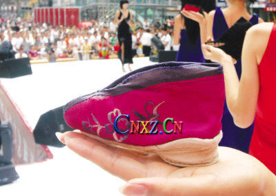 在昨日進行的中華鞋文化巡展上,一位老者向記者展示了自己家祖傳下來的一雙“三寸金蓮”。他告訴記者,這雙鞋是祖上傳下來的,從來沒有穿過,已經有130多年的歷史了,前幾天看報紙說有中華鞋文化巡展,所以就想把家傳寶拿出來也讓大家見識一下。同時,這位老先生說,中華鞋文化的歷史源遠流長,民間其實還有許多傳下來的老鞋,希望有關部門能夠重視起來,挖掘中國古老的鞋文化。