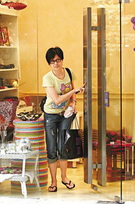 日前,穿上T恤、牛仔褲,踢著拖鞋,一臉?biāo)仡伒纳勖犁鳎?dú)自前往中環(huán)歌賦街。剛下車,她便走到一間新開張不久的精品店,原來這家精品店正是她好友所開,邵美琪走進(jìn)店內(nèi)跟好友打個招呼,放下手袋,然后又返回車上,拿了些東西,再返回精品店內(nèi)。