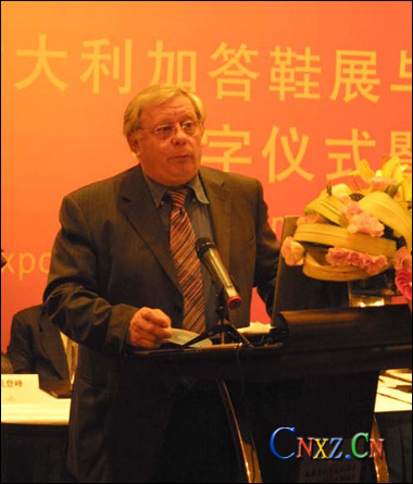 意大利加答展覽集團公司總經理喬萬尼·拉厄察對加答鞋展進行了簡要介紹,著重強調了加答鞋展對中國鞋企提供的各種便利服務,并表示為了解決中國鞋企的巨大需求,加答組委會將會于明年啟用Casino展館,為更多的中國鞋企提供絕佳的外銷平臺。該集團公司藝術總監毛洛·費斯蒂尼通過幻燈片展示未來對中國參展商展臺的設計。