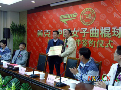 本次簽約活動(dòng)受到了極大的關(guān)注,國(guó)家體育總局手曲棒壘運(yùn)動(dòng)項(xiàng)目管理中心主任雷軍先生、副主任兼中國(guó)曲棍球協(xié)會(huì)常務(wù)副主體杜兆才先生、福建美克運(yùn)動(dòng)休閑股份有限公司董事長(zhǎng)丁思強(qiáng)先生、中國(guó)女子曲棍球隊(duì)領(lǐng)隊(duì)海線及主教練金昶伯?dāng)y教練組和全體隊(duì)員出席了簽約儀式。作為中國(guó)女曲的戰(zhàn)略合作伙伴,美克公司將為出征北京2008年奧運(yùn)會(huì)的中國(guó)女曲代表團(tuán)提供球隊(duì)建設(shè)、訓(xùn)練、發(fā)展、物資等方面所需資金及項(xiàng)目宣傳推廣等相關(guān)服務(wù)。