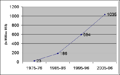 在19世紀40年代末,印度獨立時,該國鞋類出口量僅有1000000 盧比。在接下來的50多年,鞋類出口增長了近百倍,并在隨后的20年里,80年代初期鞋,鞋類出口值增加了一倍,緊接著,印度鞋產品出量在十年間,增長了30多倍。但是,在1991年蘇聯解體時,印度鞋類出口步伐放緩。工廠逐步調整,以適應新的環境,使得鞋類出口恢復了其先前的勢頭,今天,印度的鞋類出口價值已經達到1035000000美元