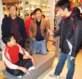圖為姚先生正與專賣店的工作人員進行交涉。李翔攝